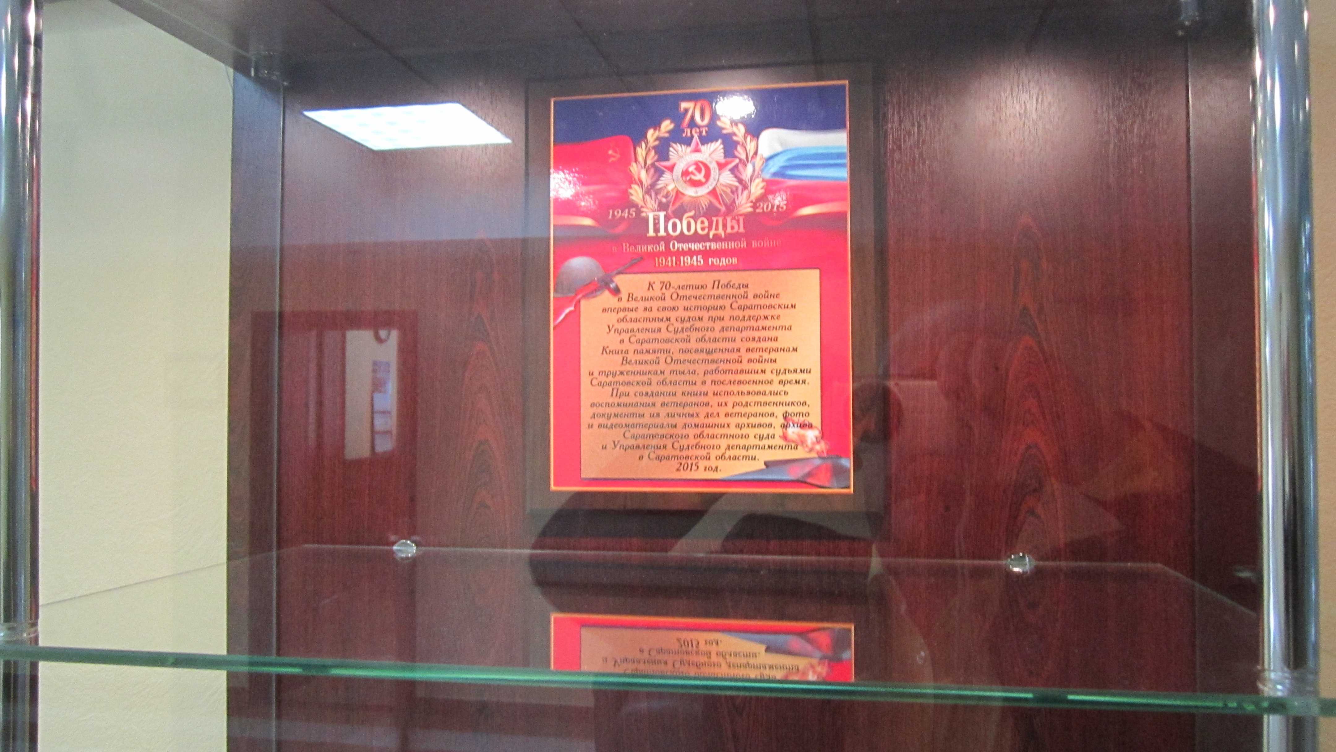 5 мая 2015 года в актовом зале Саратовского областного суда состоялось торжественное собрание коллектива, посвященное 70-му юбилею Победы. В собрании приняли участие судьи в отставке — ветераны Великой Отечественной войны и труженики тыла, их родственники, а также председатель Саратовского областного комитета ветеранов войны и военной службы, главный редактор Саратовской региональной общественной организации «Фонд книги памяти» Г.В. Фролов.
